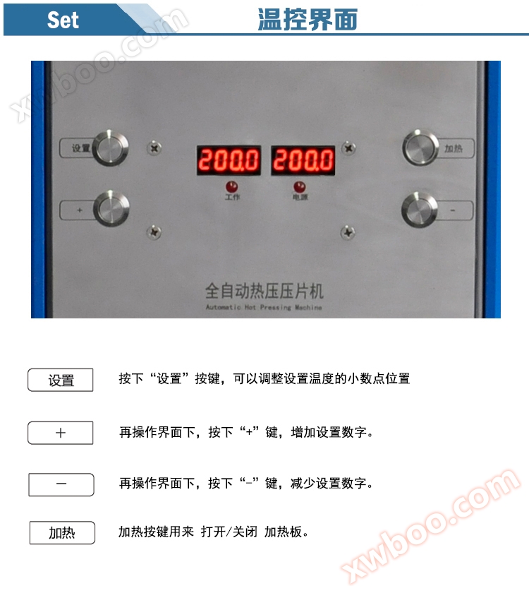 전자동 열전압 압편기분말, 고무, 플라스틱박막 등 일부 고체견본에 대해 고온압양시험을 진행할수 있으며 소형황화기로도 사용할수 있으며 현재 이미 과학연구, 교수, 견지, 제약, 촉매, 화학공업 등 각 업종분야에 널리 응용되고있다.